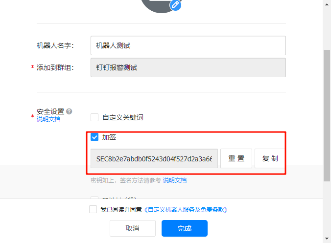 secret: SEC8b2e7abdb0f5243d04f527d2a3a66d7e53e1a66462936ef84c1aeb3978e96df5 #修改钉钉机器人的加签