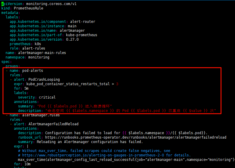 在manifests/alertmanager-prometheusRule.yaml 中新增一下自定义规则