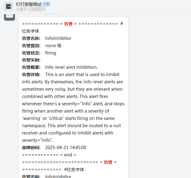 **告警级别:** {{ $alert.Labels.severity }} 级