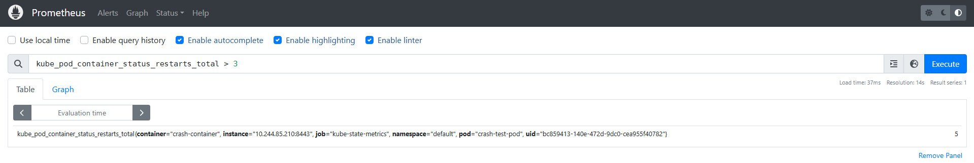 由于我们自定义的警告是一个pod重启3次即告警,那创建一个不停重启的pod就可以了.