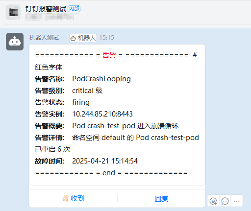 **告警详情:** {{ $alert.Annotations.message }}{{ $alert.Annotations.description}}