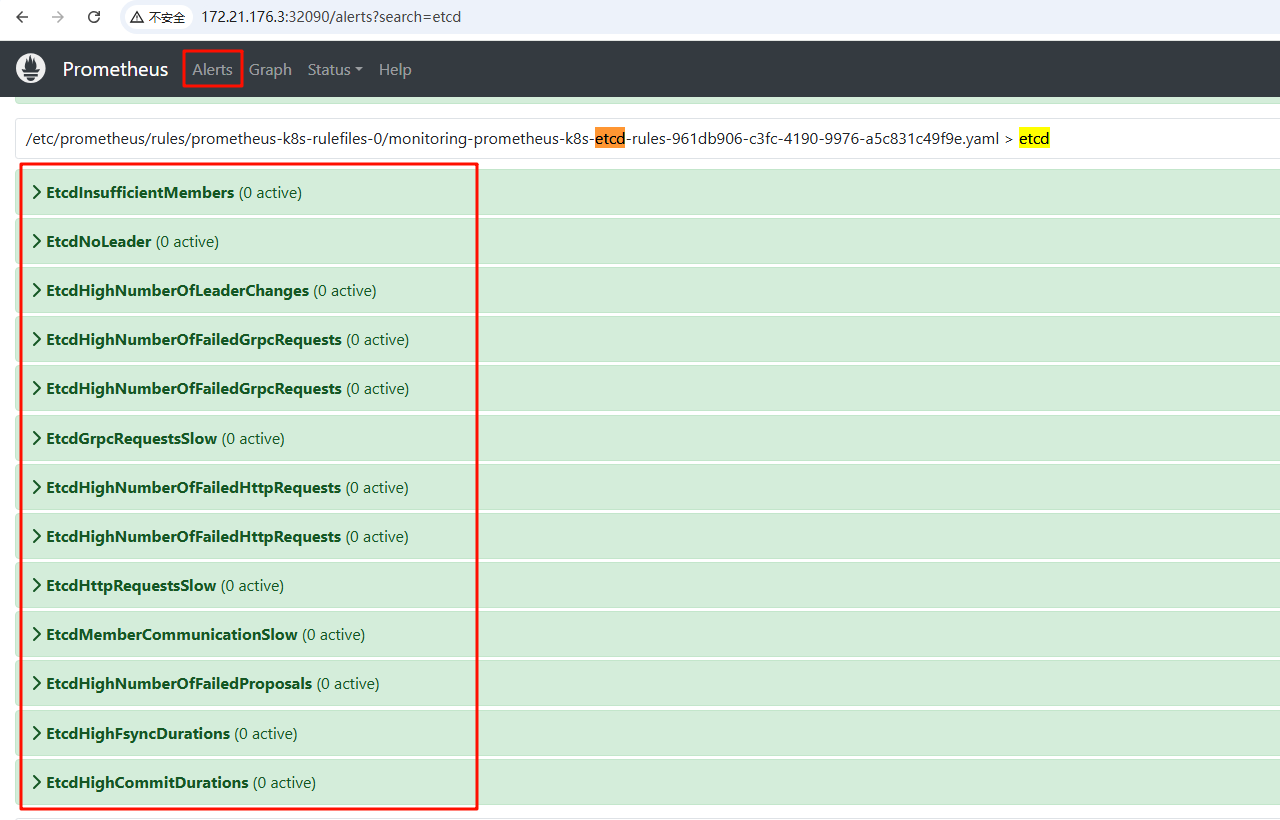 上面etcd的监控项已经出现了,但是只监控,不设置预警显然是不合理的。