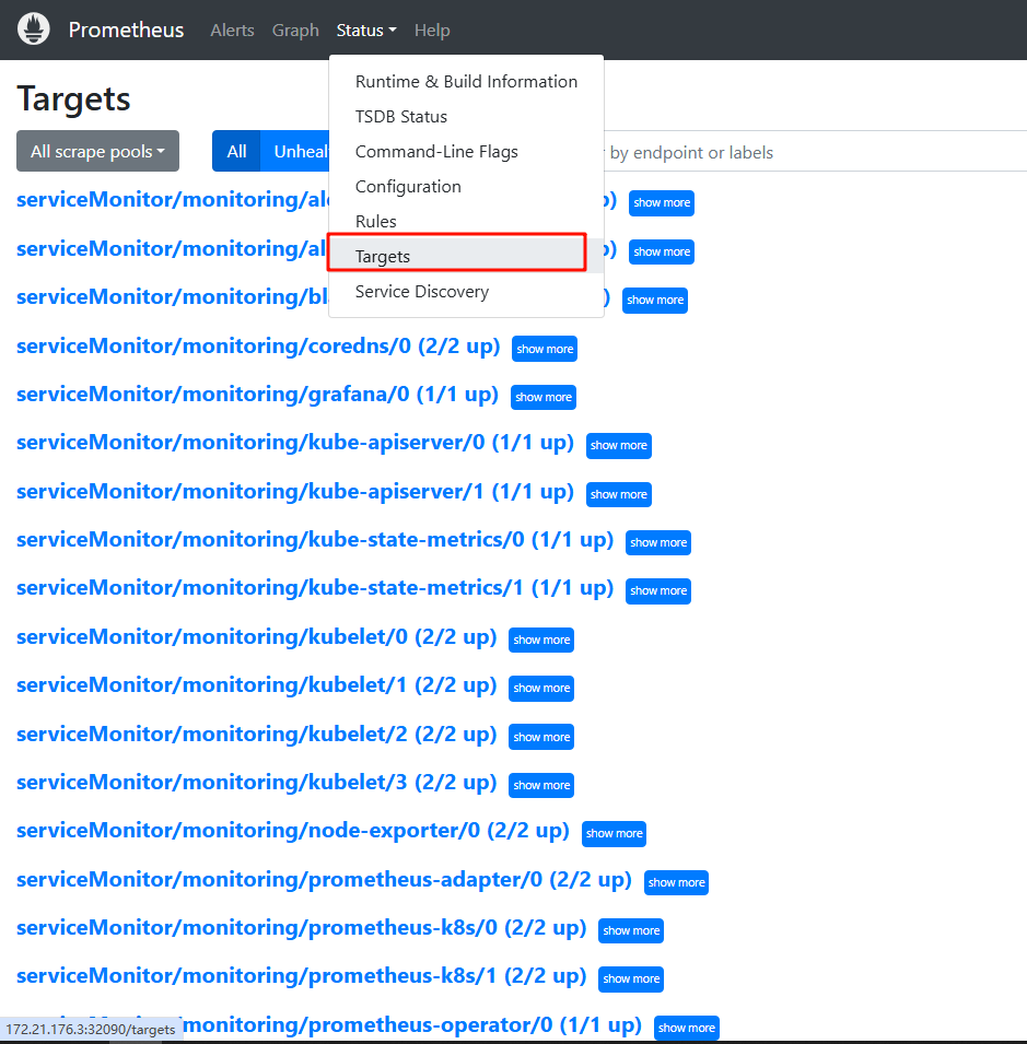 在上一章节,我们完成了Prometheus的安装,也可以在prometheus的targets管理页面看到了现在已经有一些系统应用指标被监控到了,例如 kube-apiserver,kubelet。但是任然有一些系统应用指标还缺失,例如 kube-scheduler、kube-controller-manager、kube-proxy 这三个系统组件就还没被监控。