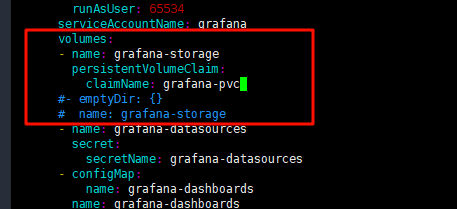如果Grafana不做数据持久化、那么服务重启以后,Grafana里面配置的Dashboard、账号密码等信息将会丢失;所以Grafana做数据持久化也是很有必要的。原始的数据是以 emptyDir 形式存放在pod里面,生命周期与pod相同;出现问题时,容器重启,在Grafana里面设置的数据就全部消失了。