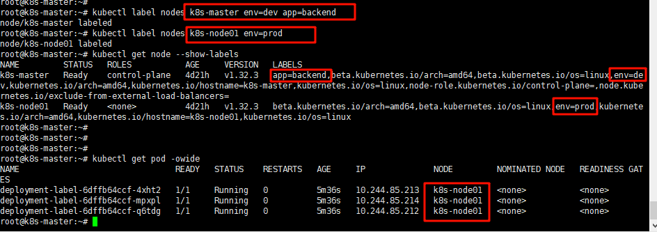 运行上面的yaml文件,由于里面指定了template.spec.nodeSelector.matchLabels的标签选择(env: prod),所有理论上创建的pod都应该分配到node01节点上面,也可以通过结果进行验证。