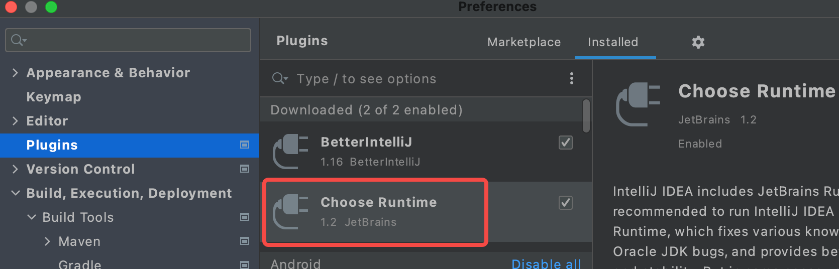 更换IDEA的JAVA的版本需要使用到Choose Runtime插件: