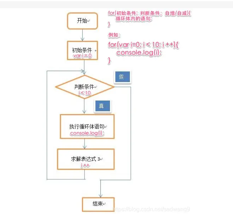 // 2.执行思路 当条件表达式为true 则执行循环体 否则退出