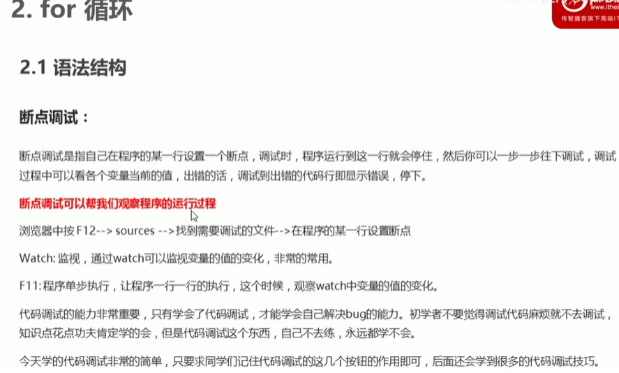 //for 循环可以重复执行不同的代码 因为我们有计数器变量 i 的存在每次循环都会变化