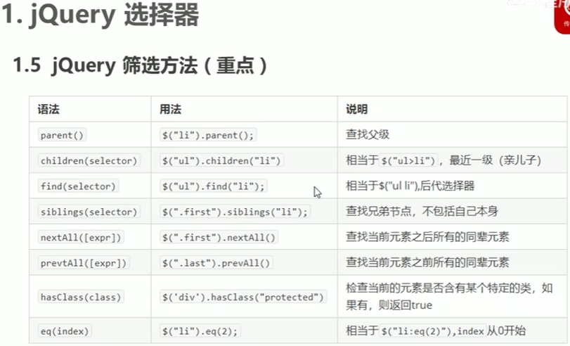 // find(selector) $("u1").find("li");相当于$("ul li"), 后代选择器