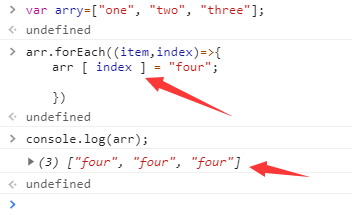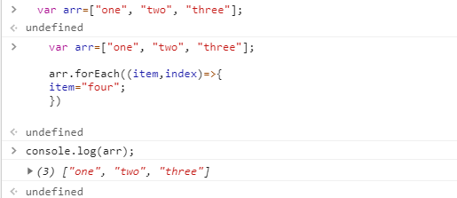 原理: 字符串在js中是不可变的,在本例中遍历数组时,item代表的是字符串本身,而arr[index]代表的时数组的那一项(可以把那一项理解成一个指针),直接对item赋值数组是无接收到的,因为字符串在js中是不可变的,但是对指针arr[index]赋值,数组是能接收到的