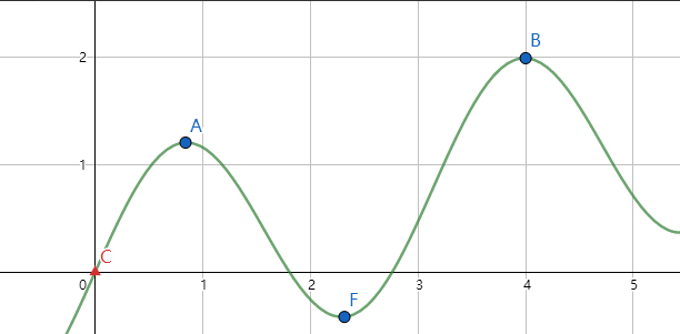 如图,由\(C\)点出发就会陷入\(A\)点的局部最优解,