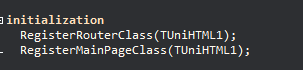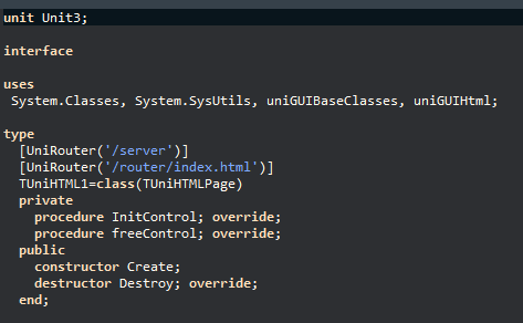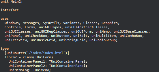 并在单元initialization处 RegisterRouterClass(窗体类) 即可实现路由定义。