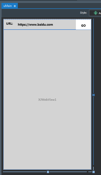 新建个delphi FMX android项目demo1, 拖个TXJWebView控件(fmx native开发包),并安装到android手机实机运行