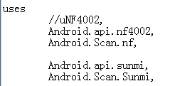 只需要引用 对应品牌封装的单元Android.api.nf4002,Android.Scan.nf,