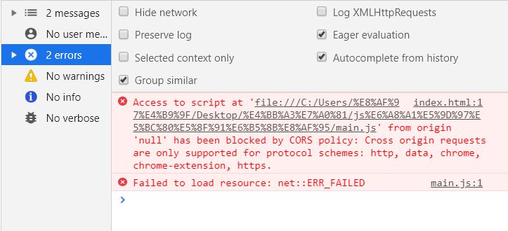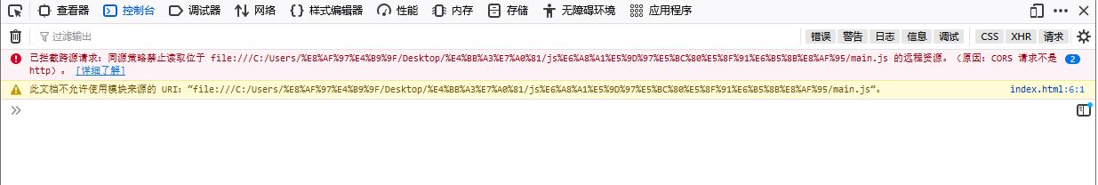 测试了三个浏览器(Microsoft Edge , Firefox , chrome),其中 Firefox 和 chrome 浏览器在直接通过点击文件打开时会报错,如下: