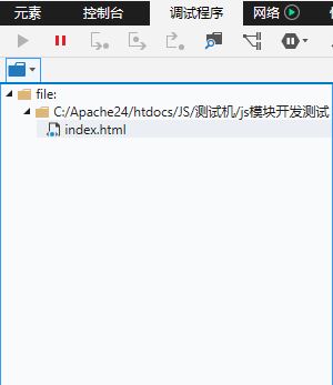 另一种有可能遇到的情况是 js 文件没有加载,在控制台的调试器中只显示html文件,没有js文件,如下: