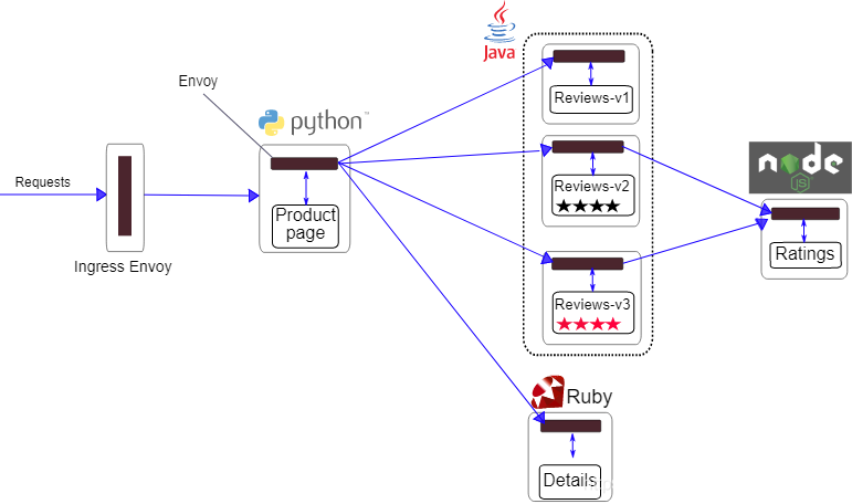 - bookinfo应用的架构