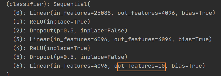 vgg16_true.classifier[6] = nn.Linear(4096, 10)