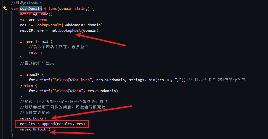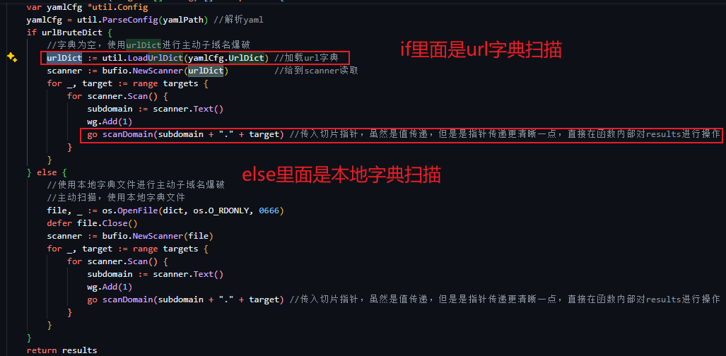 主动扫描意思是使用字典进行爆破,所以自己就能写,可以不用subfinder的代码,使用lookup