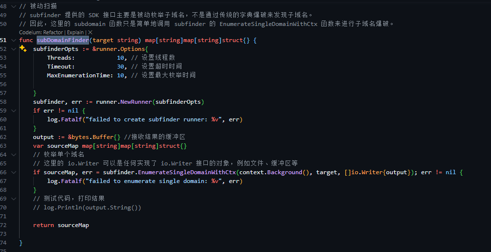 使用subfinder的核心接口sdk,有官方使用代码例子: