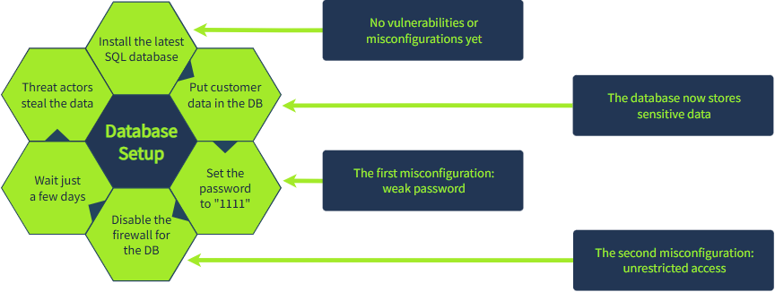另一种常见情况是,IT 部门在不知情的情况下,在安全系统中引入了新的漏洞。以下是一个简单的示例,说明由于不安全的配置,关键数据库是如何被攻破的: