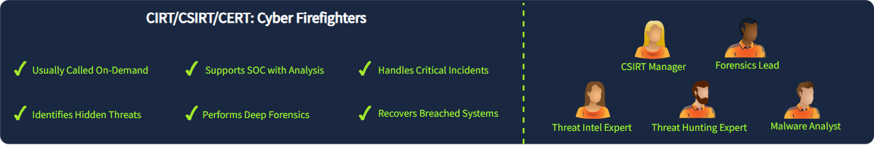 如果安全运营中心 (SOC) 的专业知识不足以应对危机,或者事件失控,您需要紧急呼叫“救火队”——网络安全事件响应小组 (CIRT),也称为 CSIRT 或 CERT。CIRT 成员应具备广泛的网络威胁知识,并能在不依赖EDR或SIEM等工具的情况下处理安全漏洞。CIRT 的工作压力大、责任重大,但也极具成就感。以下是一些 CIRT 的例子:
