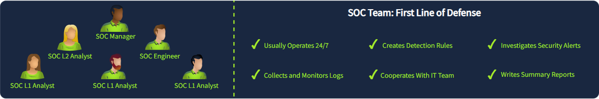 这里很可能就是您网络安全之旅的起点!安全运营中心(SOC)是组织网络安全的核心枢纽——他们是第一道防线,负责处理各种警报并应对大多数攻击。您可以在此了解更多关于:https://tryhackme.com/room/socfundamentals SOC结构的信息,但一个高效的SOC通常由以下角色组成: