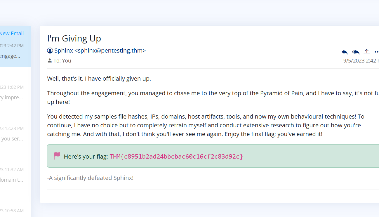 Here's your flag: THM{2ff48a3421a938b388418be273f4806d}