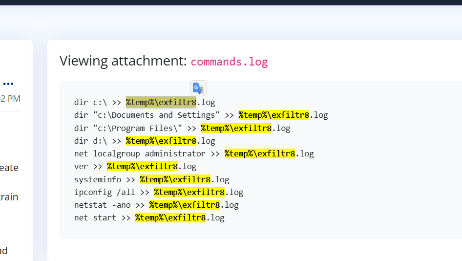 但答案是检测文件,那就是%temp%\exfiltr8.log