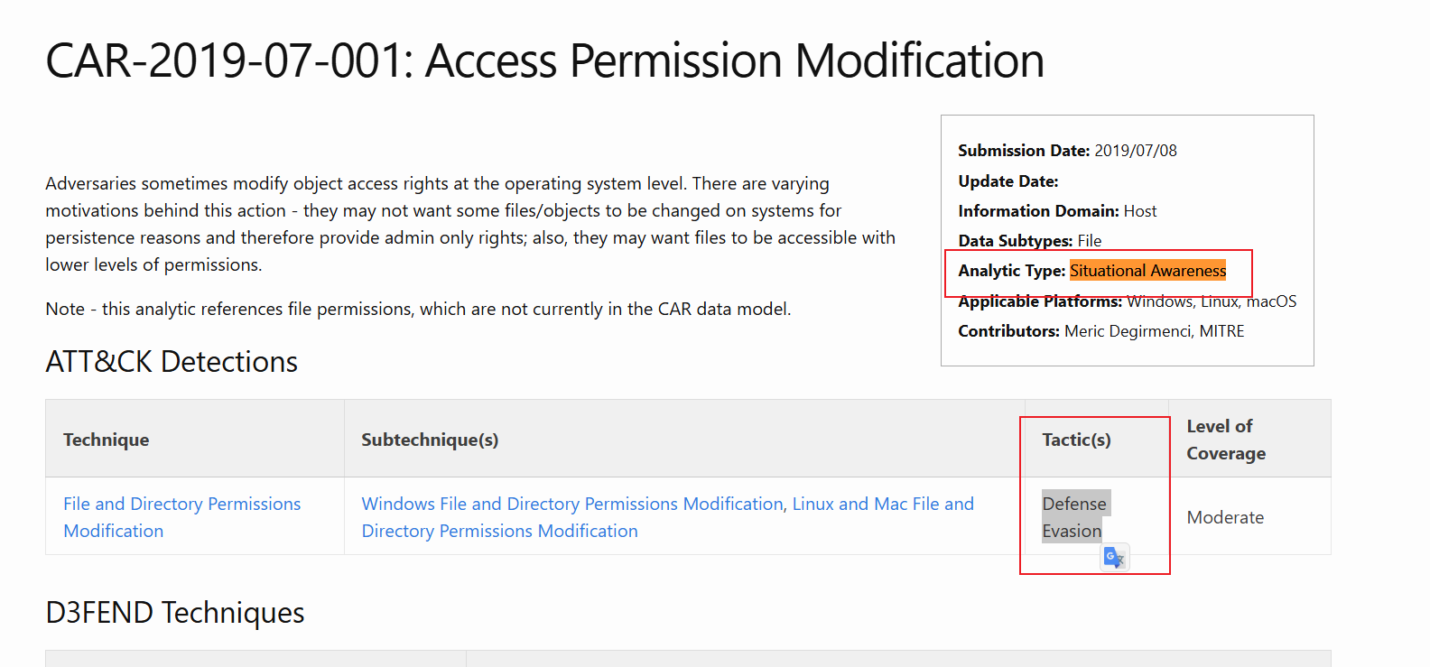 让我们深入了解 CAR,并获得一些实际操作经验。我们将首先研究CAR-2020-09-001:计划任务 - 文件访问。访问该页面后,我们会看到分析描述以及相关的 ATT&CK 策略和技术参考。