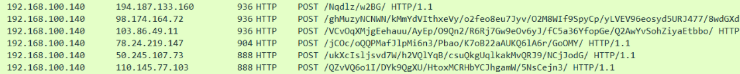 我们可以发现有个IP确实是一直发送一样的字节大小,这可能是c2的心跳包之类的