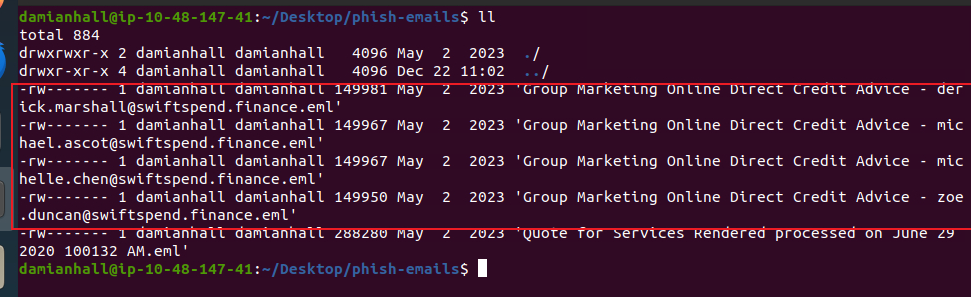 | 注意: 待分析的钓鱼邮件位于桌面上的 phish-emails 目录下。使用网页浏览器、文本编辑器并了解grep命令会有所帮助。 |