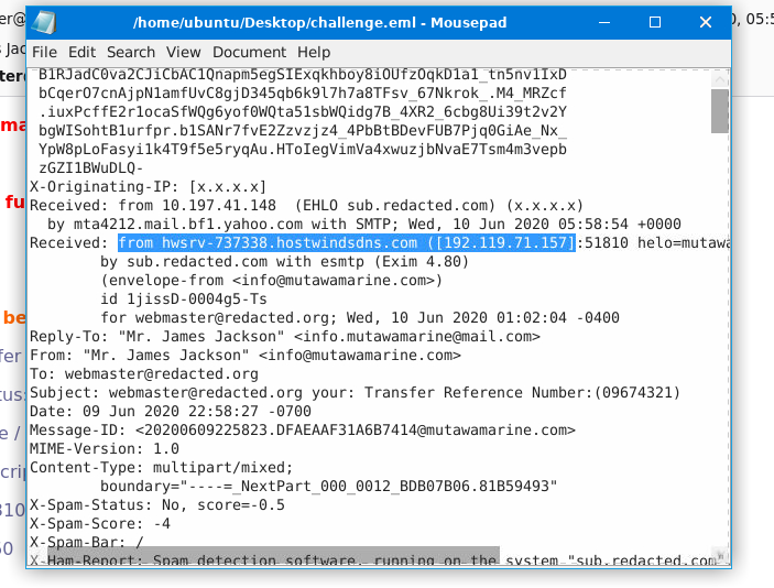 警告:这是真实邮件的片段。下图所示的邮件来自一个诱饵雅虎邮箱地址。请勿与本房间中披露的电子邮件地址或 IP 地址进行任何互动。