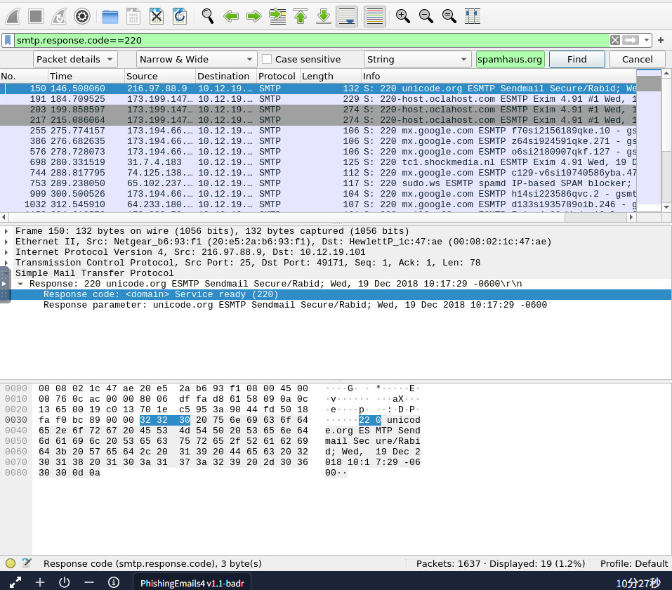 在这个房间里,您学习了SPF、DKIM、DMARC和 S/ MIME等技术如何协同工作,以验证电子邮件身份并保护用户免受网络钓鱼攻击。您还学习了如何解读SMTP响应代码并分析SMTP流量,从而了解电子邮件服务器如何处理邮件。最后,您了解了组织机构用于检测和阻止网络钓鱼攻击的工具和技术,以及以用户为中心的安全意识和报告机制。
