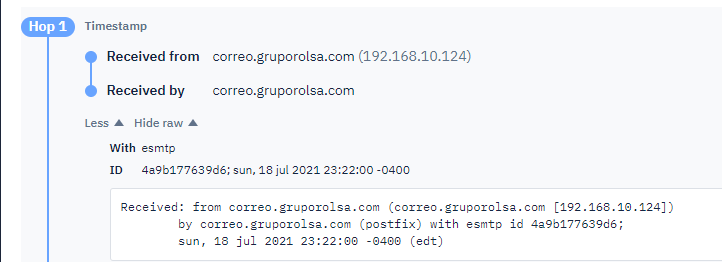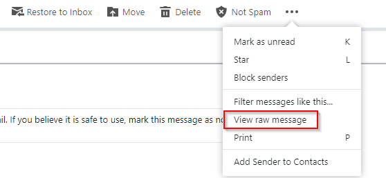 获取相同及更多电子邮件标头信息的另一种方法是查看“原始”电子邮件详细信息。