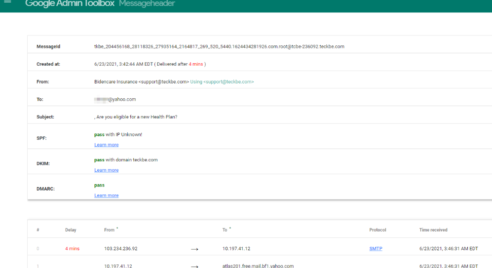 - SMTP .mailfrom / header.from - 邮件发送的域名(这些标头位于Authentication-Results中)