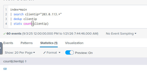 | dedup clientip