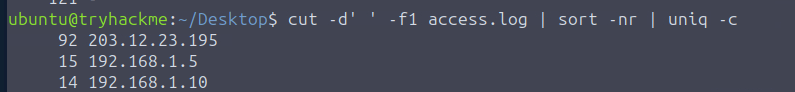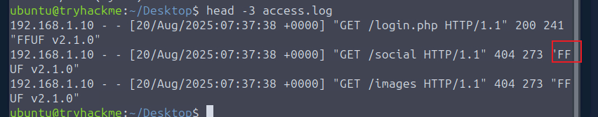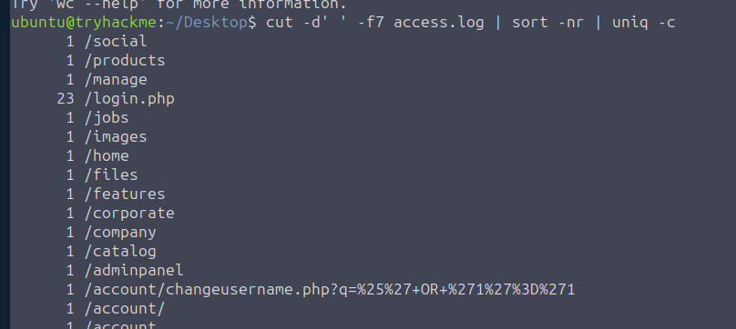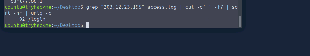 您的自行车零件网站遭受了拒绝服务攻击。请打开access.log用户桌面上的文件开始调查。日志中包含正常用户流量和攻击者流量的混合数据。在梳理日志时,请注意对同一页面的重复请求,并牢记您在此任务中学到的指标。祝您好运!