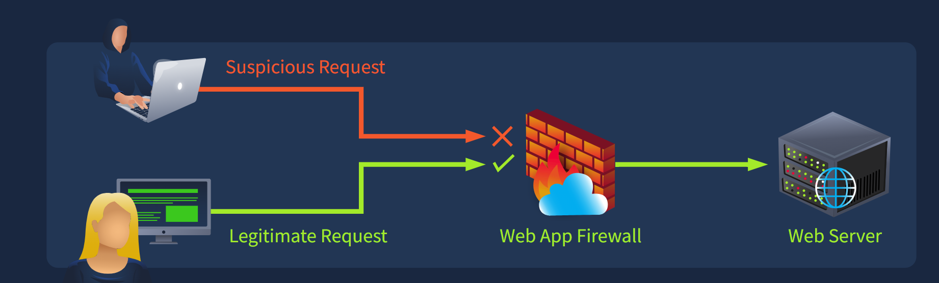 WAF( Web应用防火墙)是一种强大的工具,可以作为网站和Web应用程序的另一层保护。它们会检查传入的HTTP流量,并根据安全规则阻止或记录潜在的有害请求。可以把它想象成酒吧或夜店的保安。每个想要进入的人(Web请求)都必须经过保安(防火墙)的检查。任何不符合标准要求的人(任何请求)都将被拒绝。