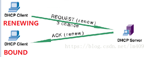 通过dhcp协议获取的ip地址是有使用时间的。当过了租用时间的一半时,客户端要发送续约报文给服务器,通知服务器是否继续使用该ip地址;