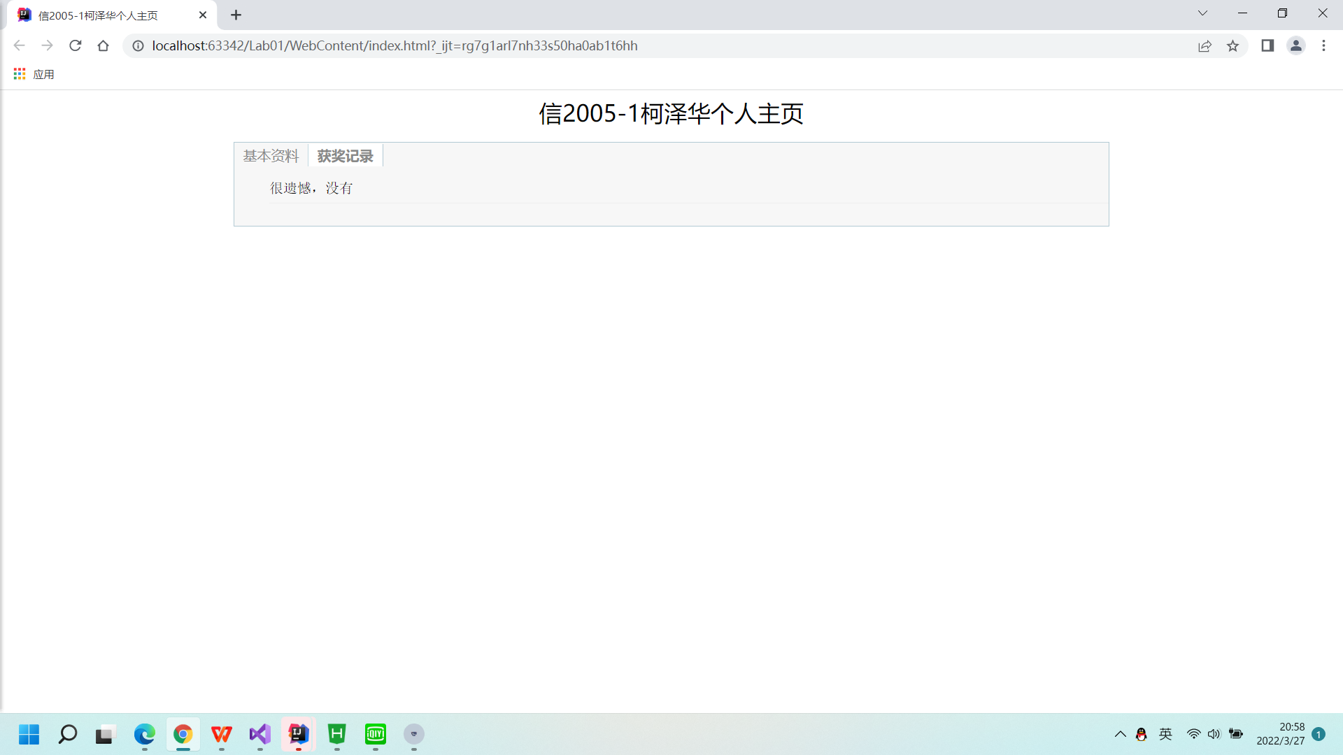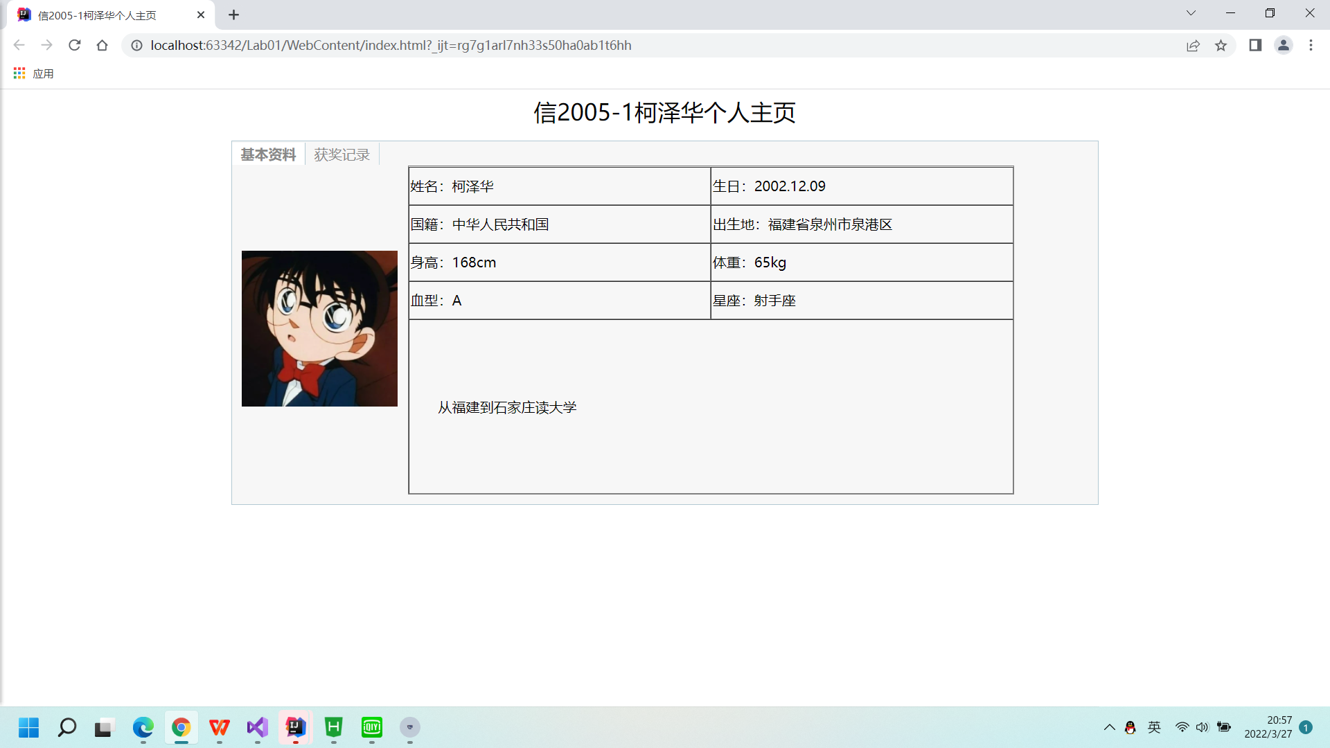 1)自己设计网页内容,做一张展示自己网页。要求展示的主要内容有:基本资料、学习经历、所得奖励、最新动态等。