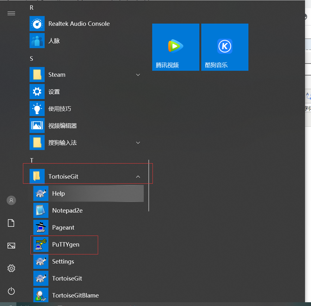 1、运行TortoiseGit开始菜单中的puttygen程序,如下图示