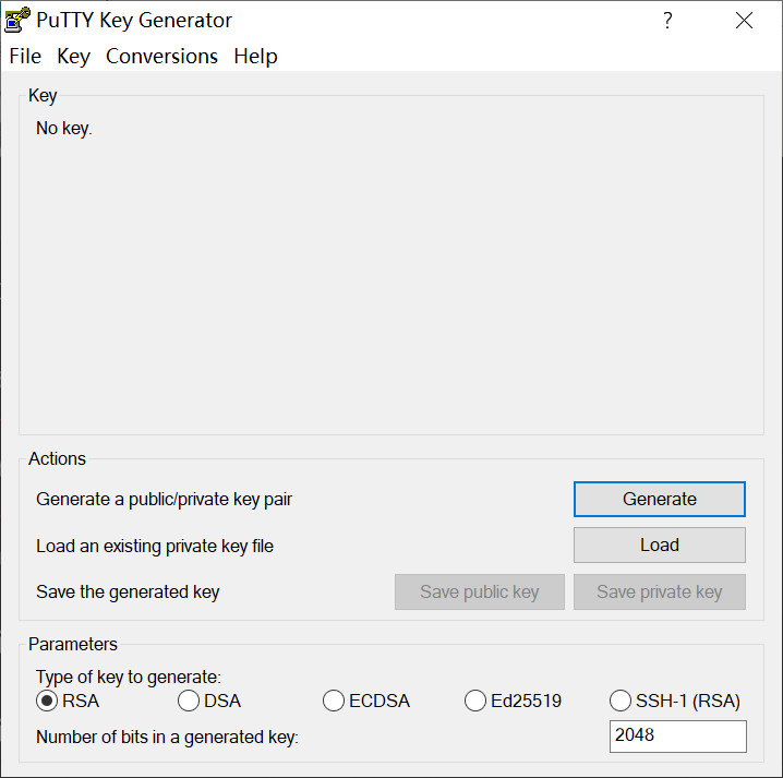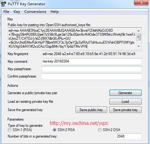 2、选择SSH-2 RSA(如果Parameters中没有SSH-2 RSA选择,可以通过开始菜单中的key来进行挑选),如图