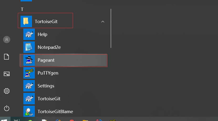 5、运行TortoiseGit开始菜单中的Pageant程序,程序启动后将自动停靠在任务栏中,图标显示为