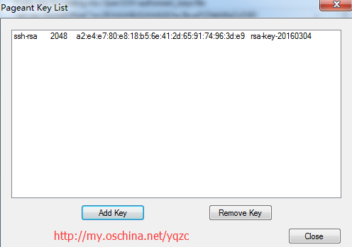 6、点击Add Key,将保存的ppk文件添加进来即可,添加后如下图