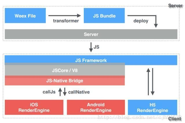 客户端收到后,由JS Framework处理,对IOS和Android,会通过V8引擎解析,以json的形式返回给客户端