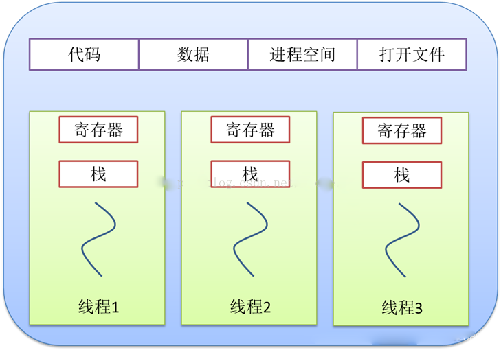后来,随着计算机的发展,对CPU的要求越来越高,进程之间的切换开销较大,已经无法满足越来越复杂的程序的要求了。于是就发明了线程,线程是程序执行中一个单一的顺序控制流程,是程序执行流的最小单元,是处理器调度和分派的基本单位。一个进程可以有一个或多个线程,各个线程之间共享程序的内存空间(也就是所在进程的内存空间)。一个标准的线程由线程ID,当前指令指针PC,寄存器和堆栈组成。而进程由内存空间(代码,数据,进程空间,打开的文件)和一个或多个线程组成。