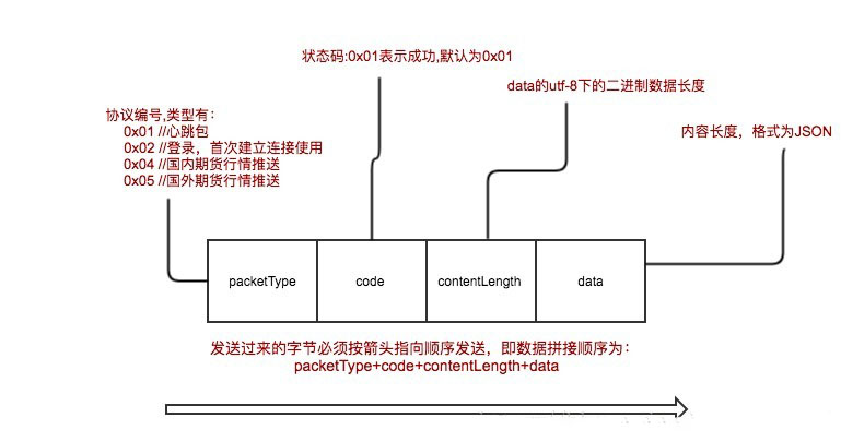 最近在做项目时,用到socket,推送行情数据,达到数据实时更新的目的。为了节约时间和成本,便使用轮子CocoaAsyncSocket框架,采用TCP连接进行数据传输。和后台约定采用自定义协议,采用byte方式传输,数据格式如下: