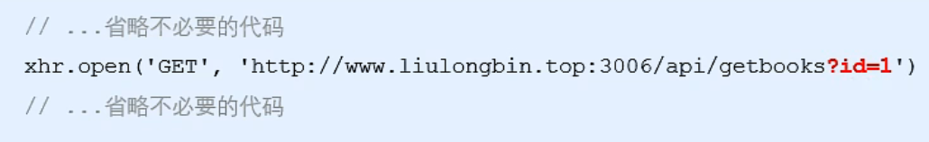 使用xhr对象发起带参数的GET请求时,只需在调用xhr.open期间、为URL地址指定参数即可: